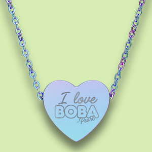It sits right at the collarbone. It layers. It catches light. It starts conversations. And when someone asks what it says, you get to look them dead in the eyes and say "I love boba" with the full confidence of someone who has made peace with their priorities.