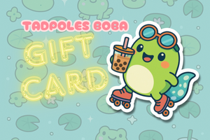 - Redeemable at checkout on our online shop (tadpolesboba.com) for any Tadpoles merch — from Pearl plushies to pastel pond-core drip.